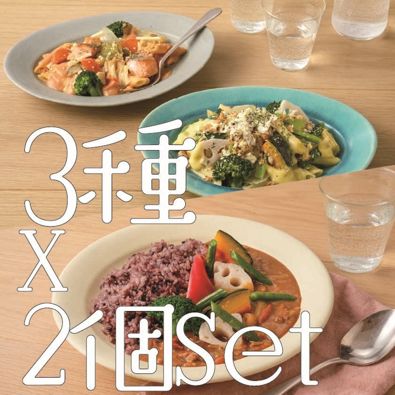 雑穀のショートパスタ2種&彩り野菜とチキンのピリ辛カレー6個セット