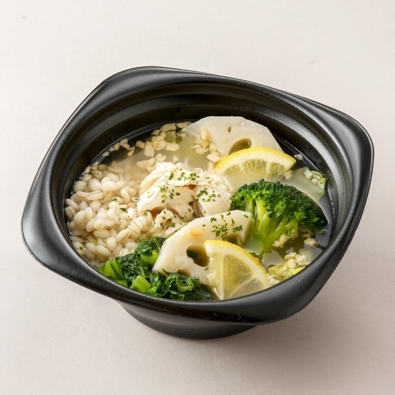 生姜とレモンの爽やかな風味が広がる、すっきりとした味わいのスープです。